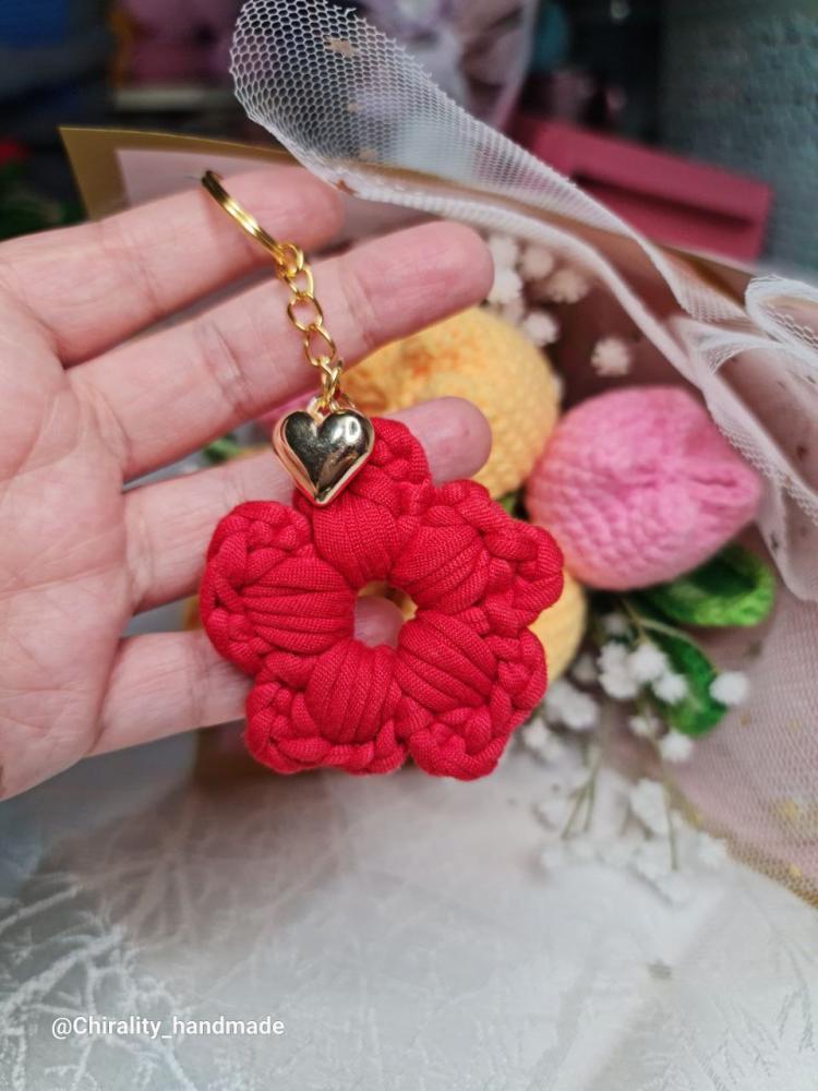 مميزات تعليقة ورد احمر كروشيه مع قلب: