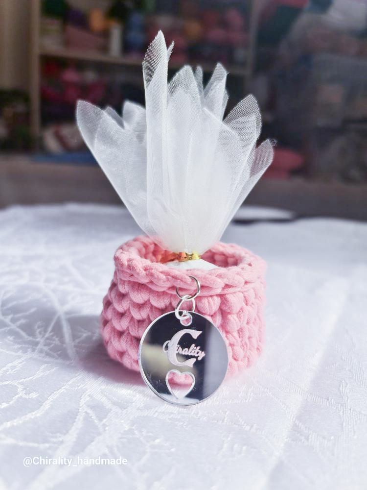 توزيعات للمناسبات على شكل سلة تم حياكتها بعناية باستخدام خيوط قطنية ناعمة تمنحها ملمسًا لطيفًا ومظهرًا متقنًا يعكس الذوق الرفيع. يتسم تصميمها بالشكل الجمالي البسيط الذي يمكن تنسيقه بسهولة مع ألوان المناسبة وطابعها العام، سواء كانت حفل زفاف، أو استقبال مولود، أو حفلة تخرج، أو عيد ميلاد. تُضفي هذه السلة لمسة شخصية أنيقة، وتسهم في جعل الاحتفال تجربة مميزة لا تُنسى لكل من يشاركك لحظاتك الخاصة.