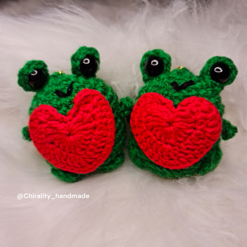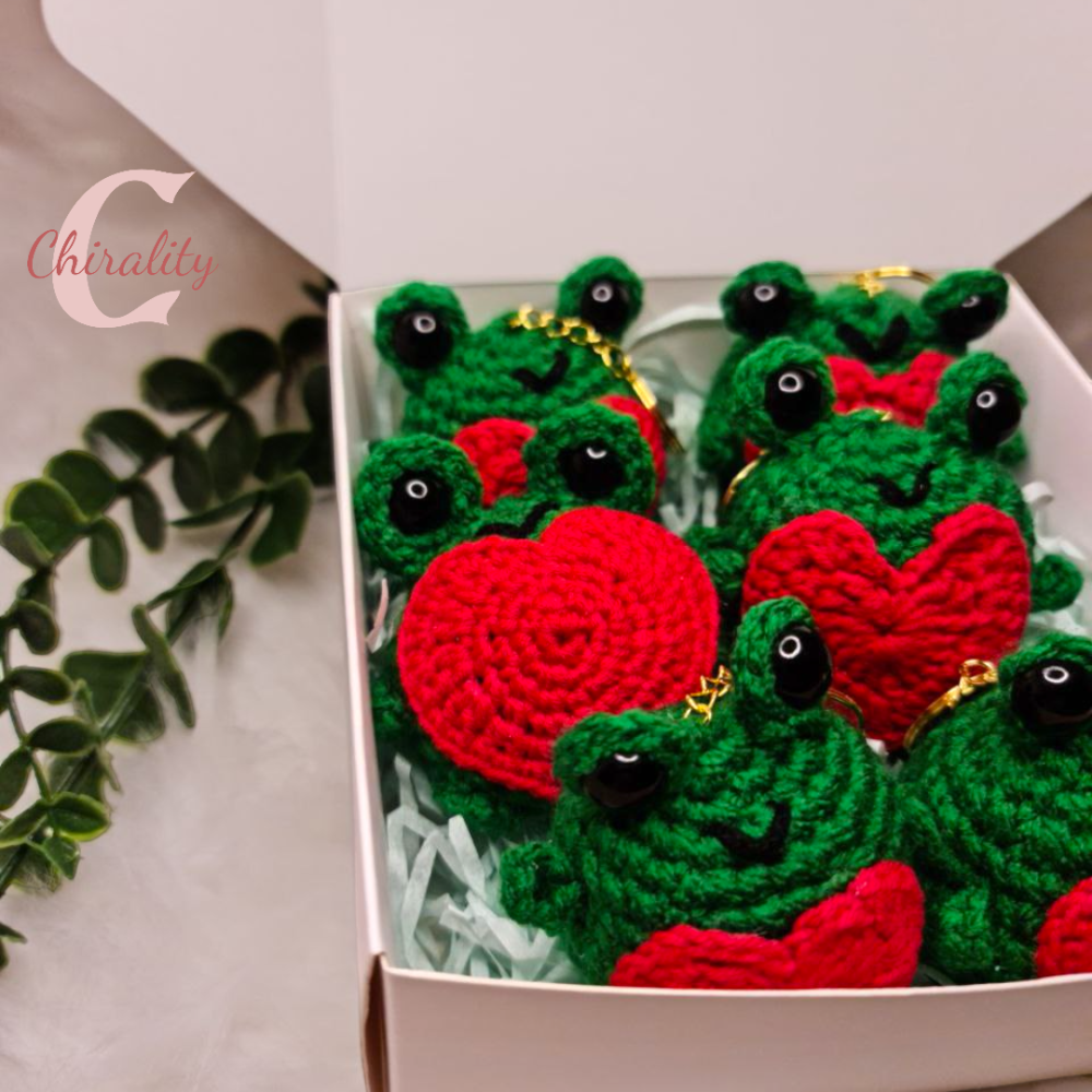 - يتميز هذا المنتج بتصميم ضفادع لطيفة ممسكة بقلوب حمراء.