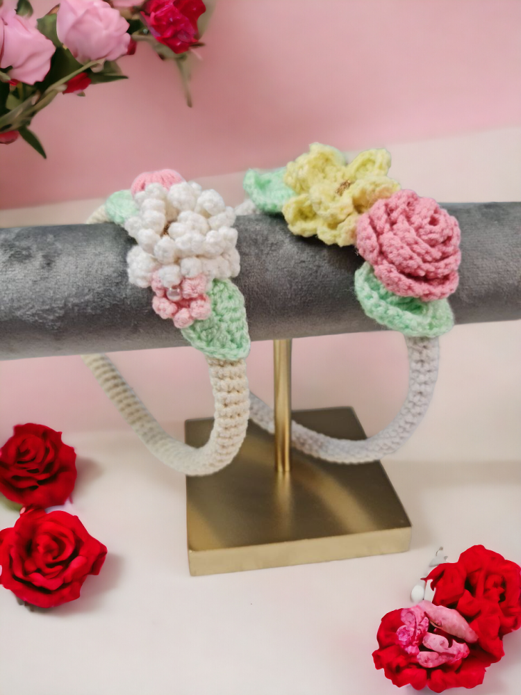 يعتبر طوق كروشيه للشعر ورود الربيع مثاليًا لإضافة لمسة جمالية وأنثوية إلى تسريحتك. مصنوع يدويًا بأنامل ماهرة، يتميز هذا الطوق بورود زاهية تجسد روح الربيع وتضفي لمسة من الجمال والأناقة على إطلالتك.استمتعي بالجودة والجمال الذي سيضيفه إلى إطلالتك.