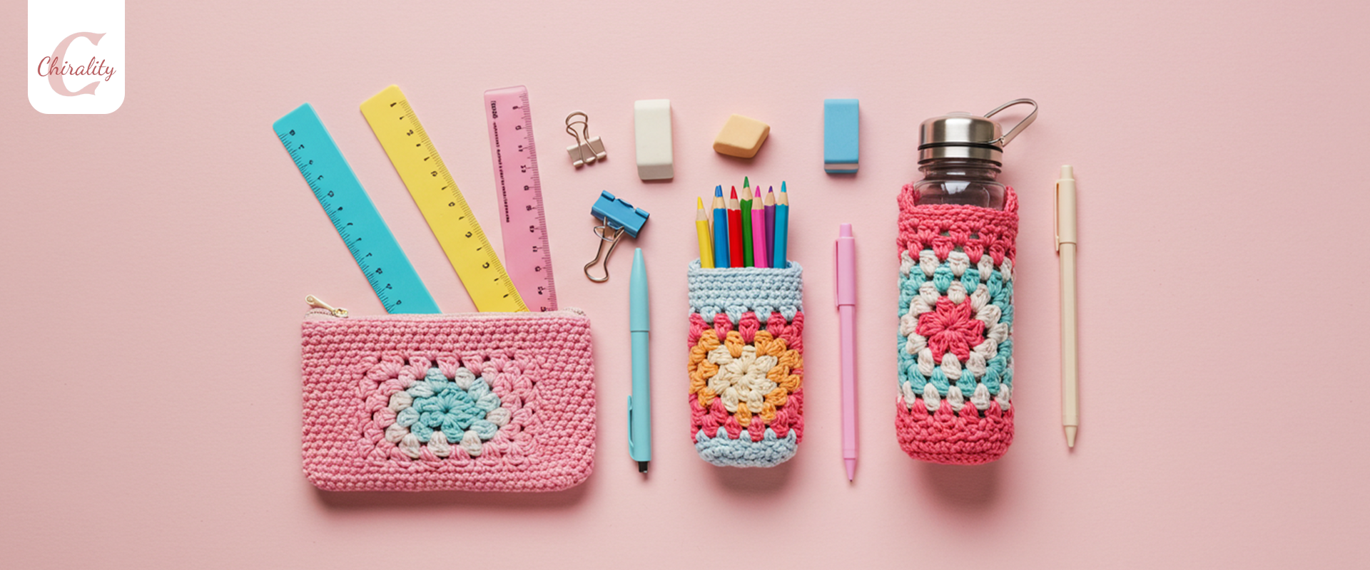 مستلزمات الكروشيه المبهجة ترافق الطفل في المدرسة والمنزل، مما يخلق استمرارية تعليمية تساعد على ترسيخ المعلومات.